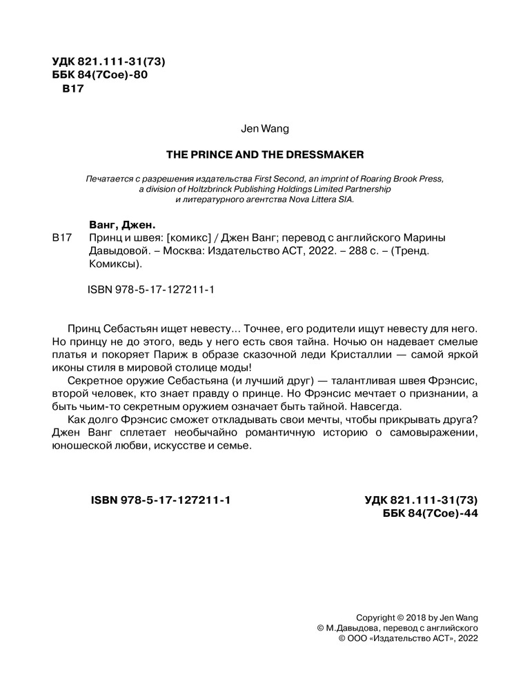 В данный момент этот товар отсутствует в продаже. Возможно, у нас найдется аналогичный или похожий товар здесь. Серия: Тренд Комиксы Принц Себастьян ищет невесту... Точнее, его родители ищут невесту для него. Но принцу не до этого, ведь у него есть своя тайна. Ночью он надевает смелые платья и покоряет Париж в образе сказочной леди Кристаллии — самой яркой иконы стиля в мировой столице моды!