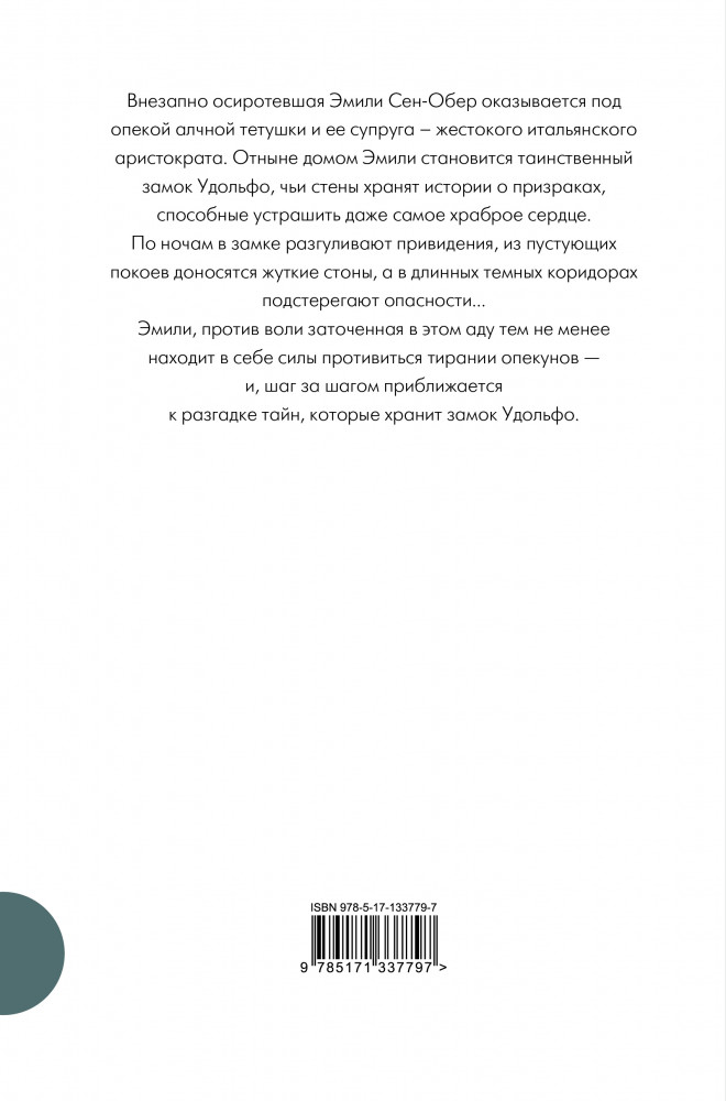 💳 Оплатить за товар можно при получении 🇰🇿 Есть бесплатная доставка по Казахстану от 1 дня 🎁 Копите бонусы с каждой покупки Серия: Шедевры в одном томе Внезапно осиротевшая Эмили Сен-Обер оказывается под опекой алчной тетушки и ее супруга — жестокого итальянского аристократа. Отныне домом Эмили становится таинственный замок Удольфо, чьи стены хранят истории о призраках, способные устрашить даже самое храброе сердце. По ночам в замке разгуливают привидения, из пустующих покоев доносятся жуткие стоны, а в длинных темных коридорах подстерегают опасности... |