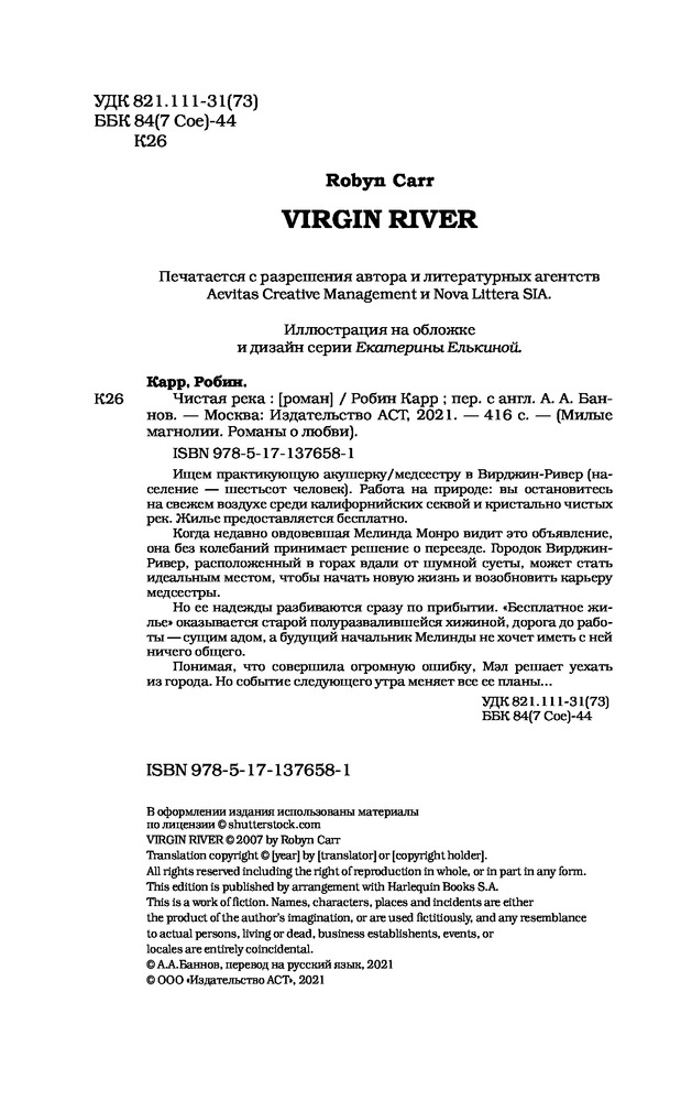 💳 Оплатить за товар можно при получении 🇰🇿 Есть бесплатная доставка по Казахстану 🎁 Копите бонусы с каждой покупки Серия: Милые магнолии. Романы о любви Когда недавно овдовевшая Мелинда Монро видит это объявление, она без колебаний принимает решение о переезде. Городок Вирджин-Ривер, расположенный в горах вдали от шумной суеты, может стать идеальным местом, чтобы начать новую жизнь и возобновить карьеру медсестры. |