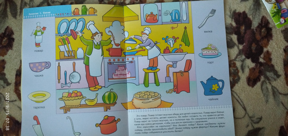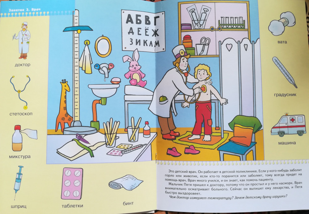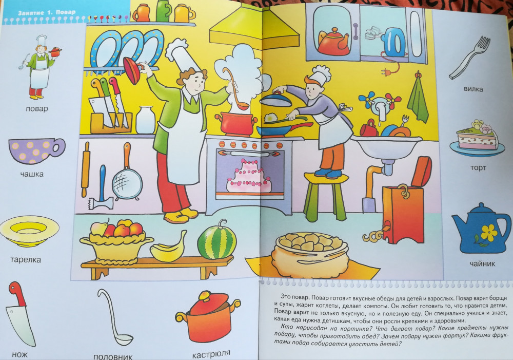 Книга интересна, увлекательная, как и остальные из этой серии. Огромный плюс этой книги в том, что её использование не ограничивается только предписанным в ней возрастом, а может быть полезной для детей постарше. Чтобы не только родитель объяснял профессии, а уже сам ребёнок мог рассказать и показать, кто нарисован, какой профессии и какие инструменты нужны и для чего.