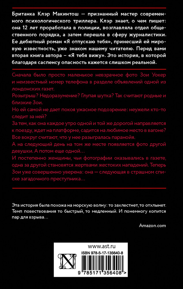 💳 Оплатить за товар можно при получении 🇰🇿 Есть бесплатная доставка по Казахстану от 1 дня 🎁 Копите бонусы с каждой покупки Серия: Психологический триллер Сначала было просто маленькое невзрачное фото Зои Уокер и неизвестный номер телефона в разделе объявлений одной из лондонских газет. |