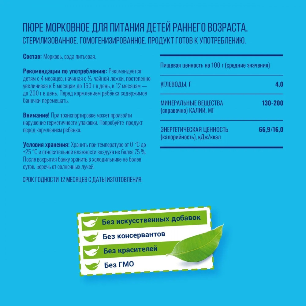 Отзывы «Пюре овощное «Морковь»»