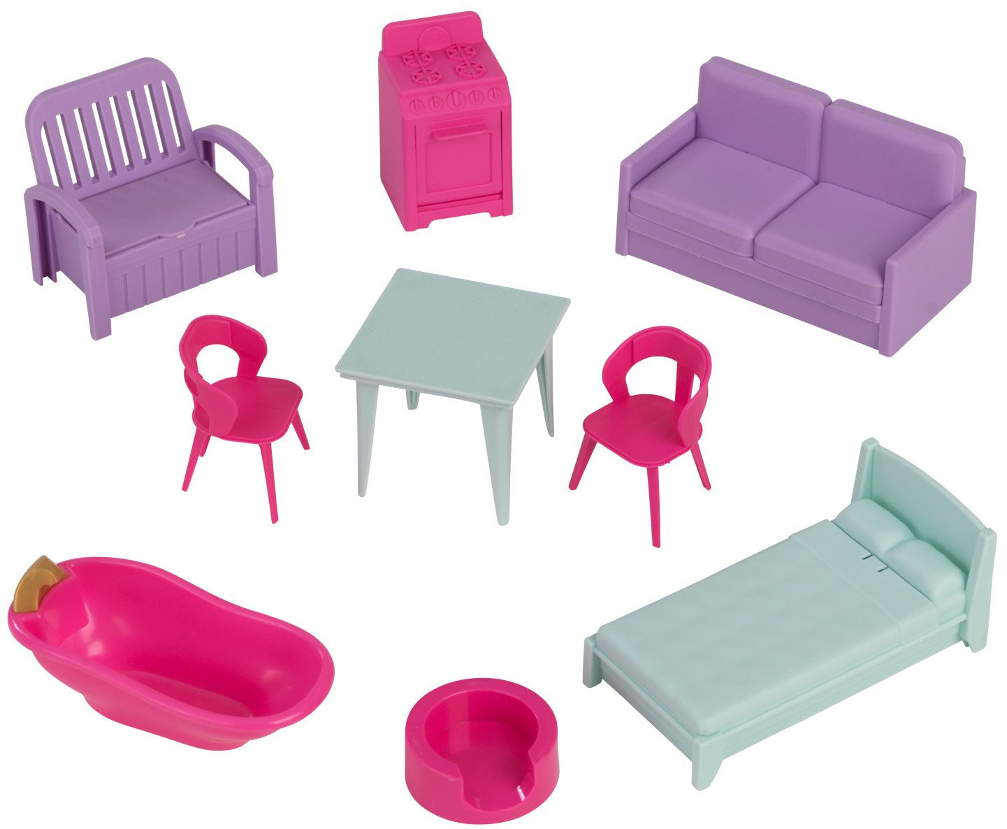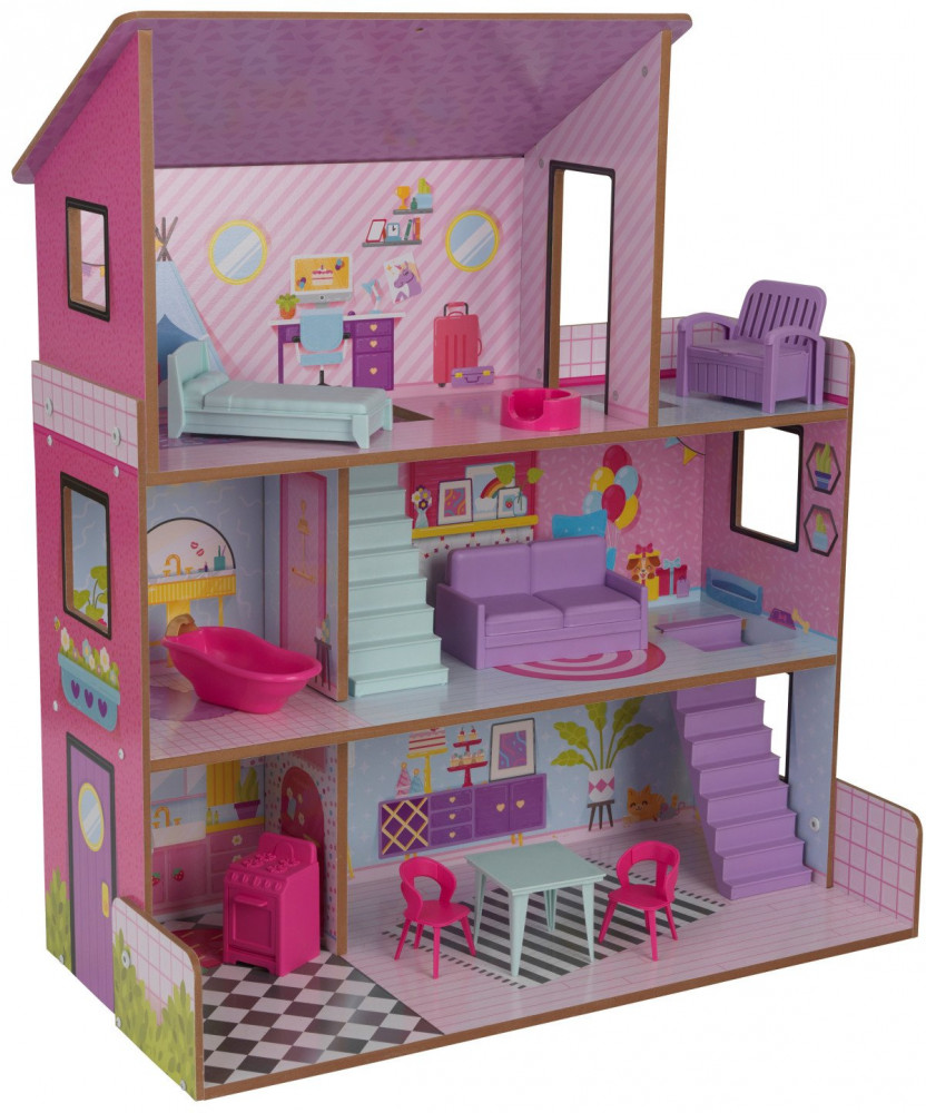 KidKraft Дом кукольный с мебелью «Лолли»В данный момент этот товар отсутствует в продаже. Возможно, у нас найдется аналогичный или похожий товар здесь. Трехуровневый кукольный домик имеет 7 комнат. Домик подходит для мини- кукол до 12 см. В наборе 10 предметов мебели: диван, кресло, плита, стул, 2 стула, ванна, лежанка для питомца, кушетка. |