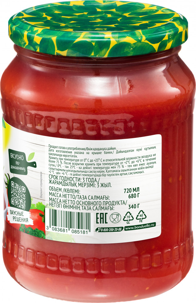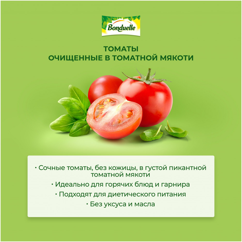 Bonduelle Томаты в томатной мякоти очищенныеВ данный момент этот товар отсутствует в продаже. Возможно, у нас найдется аналогичный или похожий товар здесь. Представьте: лето, солнце — и спелые, ароматные, ярко-красные помидоры так и просятся на тарелку. Теперь с новинкой Bonduelle попробовать лето можно даже зимой. Сочные томаты, без кожицы, в густой пикантной томатной мякоти. Только томаты — и никакого уксуса или масла. Абсолютно натуральные, подходят для диетического питания. Просто откройте банку и наслаждайтесь натуральным вкусом. Можете также использовать при приготовлении горячих блюд или в качестве гарнира. |