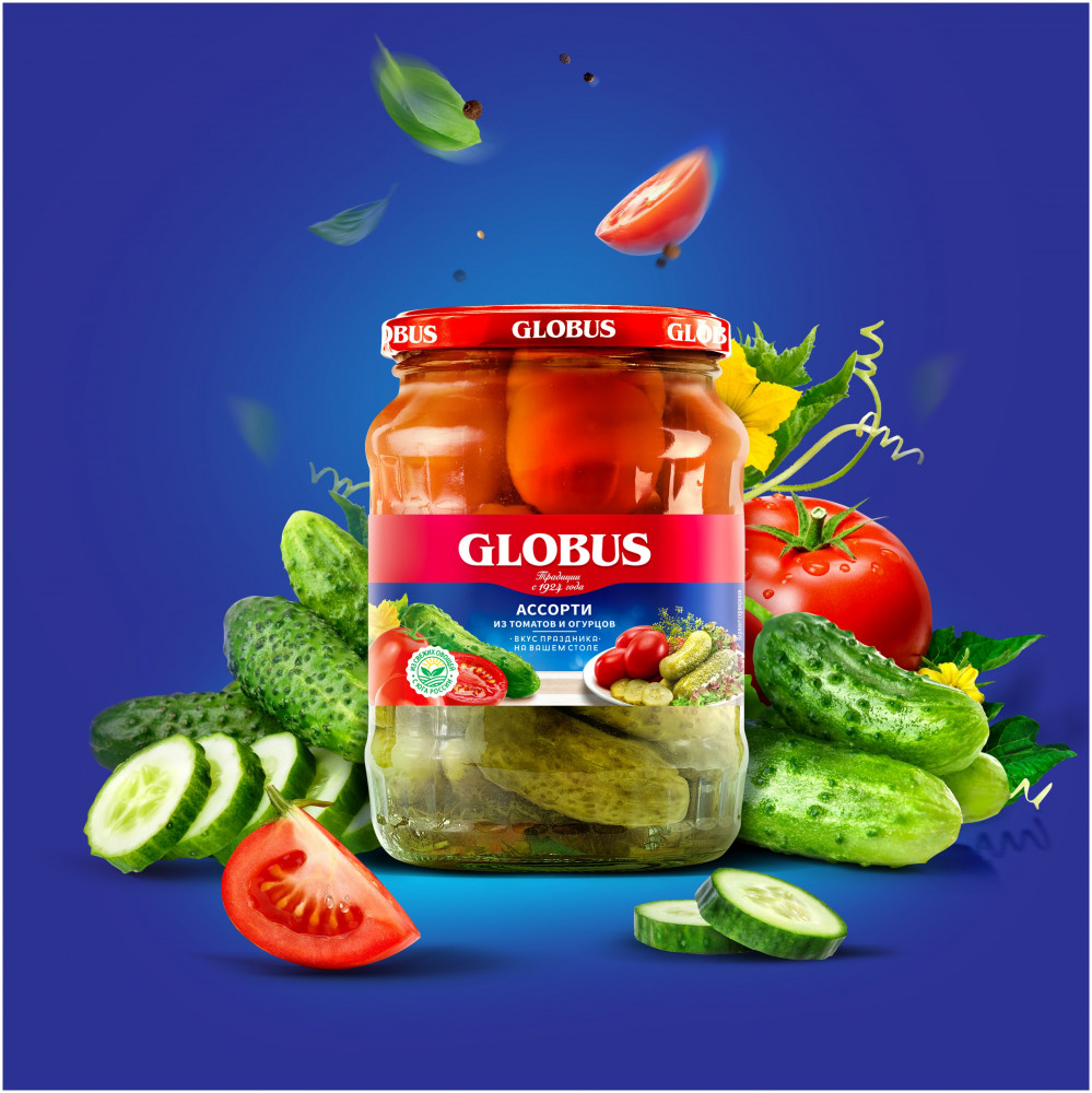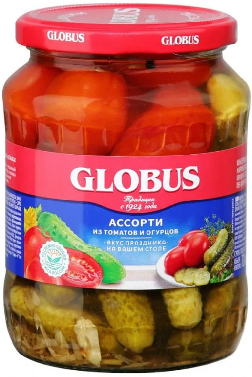 Globus Ассорти из томатов и огурцов-20% +13 вкусные плотная мякоть клетчатка резкий уксус запах плесени