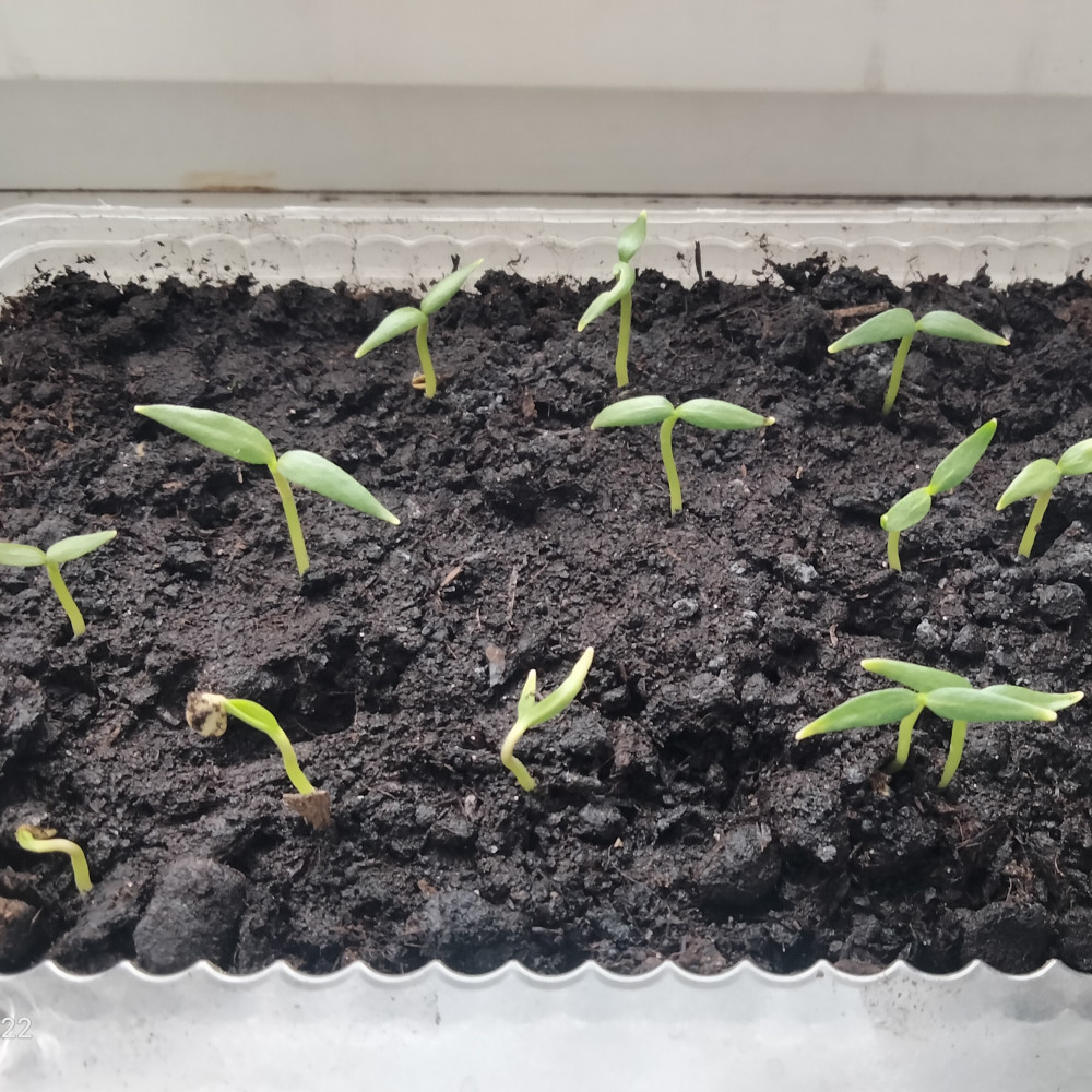 посеяла 4 января, сейчас как на фото. посеяла на контейнер, когда появятся настоящие листы сделаю перевалку на стаканы