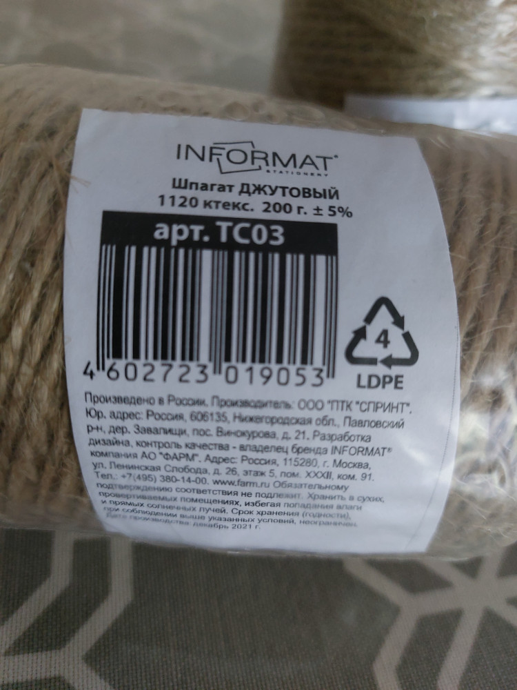 шпагат хороший, ровный, без мусора. использовала для подвязки и при оформлении бамбуковых подпорок для вьющихся.