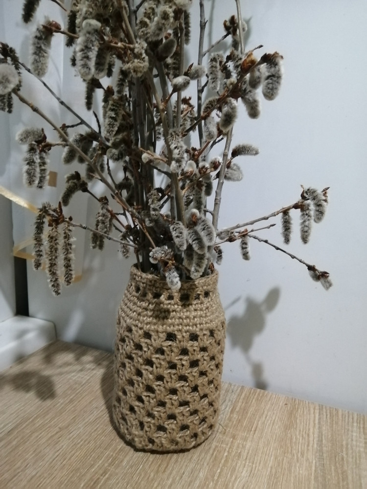 Джут отличный. Вязать легко. Чуть пахнет и ворсится. Связала чехол на литровую банку, альтернатива вазе🤓😍. Ещё пол бобинки осталось.