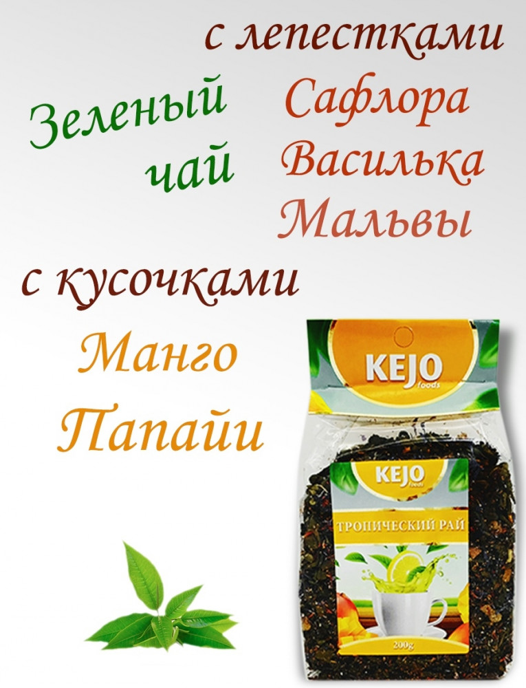 Kejo Foods Чай зеленый «Тропический рай»вкус качество рекомендован В данный момент этот товар отсутствует в продаже. Возможно, у нас найдется аналогичный или похожий товар здесь. Зеленый китайский чай ганпаудер с кусочками манго и папайи, лепестками сафлора, мальвы и василька, ароматизированный натуральными маслами. Свежий аромат этого чая подарит бодрость и хорошее настроение. Кажется, что в каждой чашке сконцентрирована энергия солнца — энергия самой природы. |