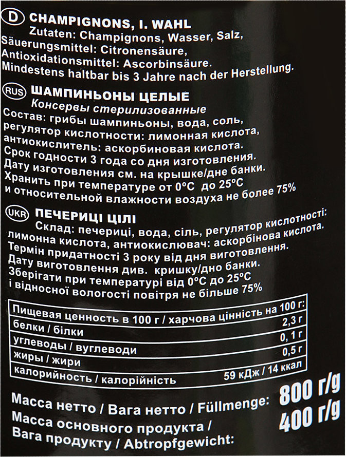 Lorado Шампиньоны целые+36
