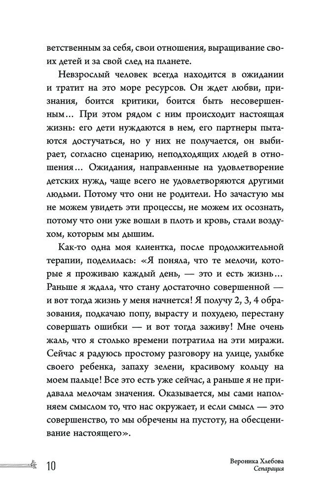 Понравилось в качестве ознакомительной книги о теме сепарации. Для лиц разбирающихся в данной теме книга будет скорее всего недостаточно иформативной и ничего нового для себя не почепнете Переплет твердый, бумаги внутри очень хрупкие и тусклые.