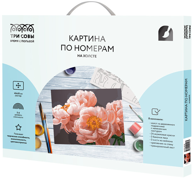 • холст на деревянном подрамнике 40×50 с нанесенным контуром, пронумерованный в соответствии с номерами красок. Контур под раскрашивание нанесен в том числе и на торцы подрамника, что позволяет разместить готовую работу на стене не обрамляя в багет или раму. Технология точной разбивки сюжета картины на разные цветовые оттенки гарантируют правильность исполнения полотна;