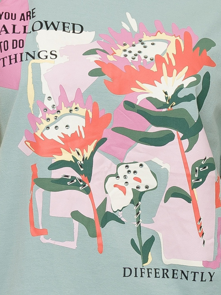 Нарядная футболка, после стирки сохранила форму и цвет.