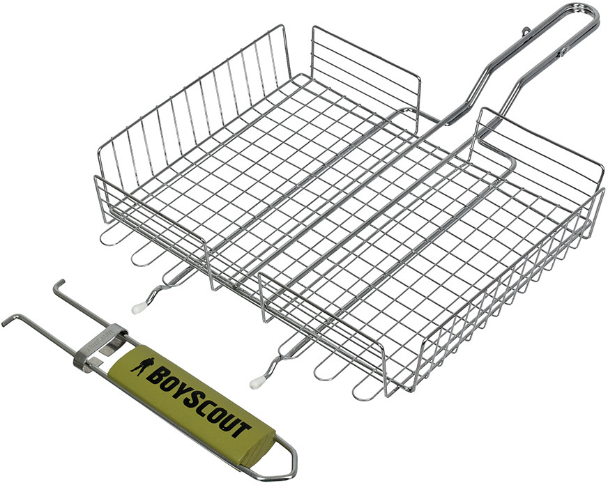 Boyscout Решетка-гриль со съемной ручкойВ данный момент этот товар отсутствует в продаже. Возможно, у нас найдется аналогичный или похожий товар здесь. Решетки для барбекю «BoyScout» в отличие от шампуров универсальны. Они подходят не только для мяса, рыбы, бифштексов, курицы, но и для сарделек, сосисок, овощей и прочего. Мы предлагаем решетки для барбекю с антипригарным и хромированным покрытием, а также решетки из нержавеющей стали. Решетки имеют деревянные ручки, которые не нагреваются при использовании. Разнообразие размеров и форм позволяет Вам без особых хлопот приготовить вкусную еду в любых количествах. |