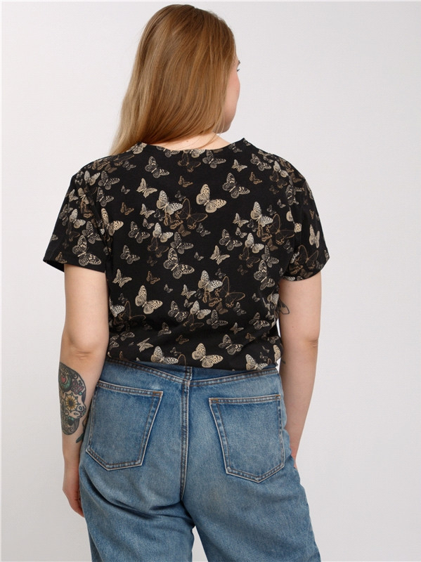 Футболка выполнена из кулира — легкого хлопкового полотна. Изделие свободного покроя с короткими рукавами и округлым вырезом горловины. Отличный вариант на каждый день!