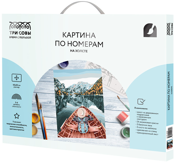• холст на деревянном подрамнике 40×50 с нанесенным контуром, пронумерованный в соответствии с номерами красок. Контур под раскрашивание нанесен в том числе и на торцы подрамника, что позволяет разместить готовую работу на стене не обрамляя в багет или раму. Технология точной разбивки сюжета картины на разные цветовые оттенки гарантируют правильность исполнения полотна;