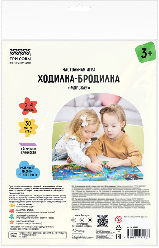 Простая настольная игра «Ходилки-бродилки. Морская» развлечёт компанию детей или объединит всю семью за увлекательным времяпровождением. Игра способствует тренировке навыков счёта до 50.