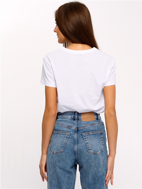 Классическая белая футболка. Хороший, плотный трикотаж. Идёт в размер,но мы брали для физкультуры в школе на размер больше, так удобнее заниматься спортом.