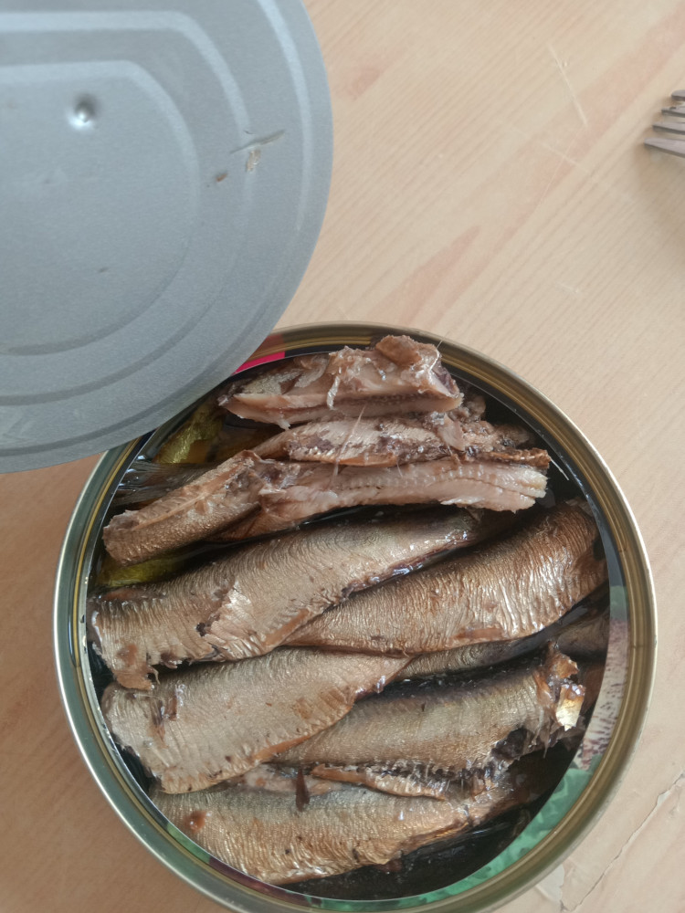Рыбка целенькая, не сильно твердая, не мелкая. В целом нормальные шпроты, по вкусу тоже.