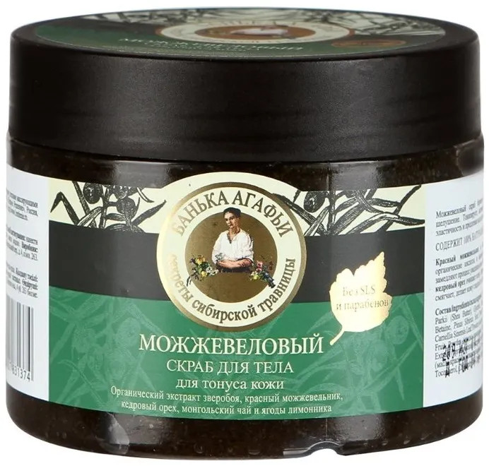 Рецепты Бабушки Агафьи Скраб для тела можжевеловый+85 травяной запах мягкая текстура натуральные частицы большой объём вызывает аллергию