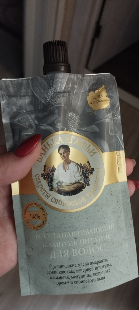 Купила 2 и перелила в свой флакон, т.к. из дойпака неудобно пользоваться. По свойствам как и все шампуни Агафьи. Завышена цена