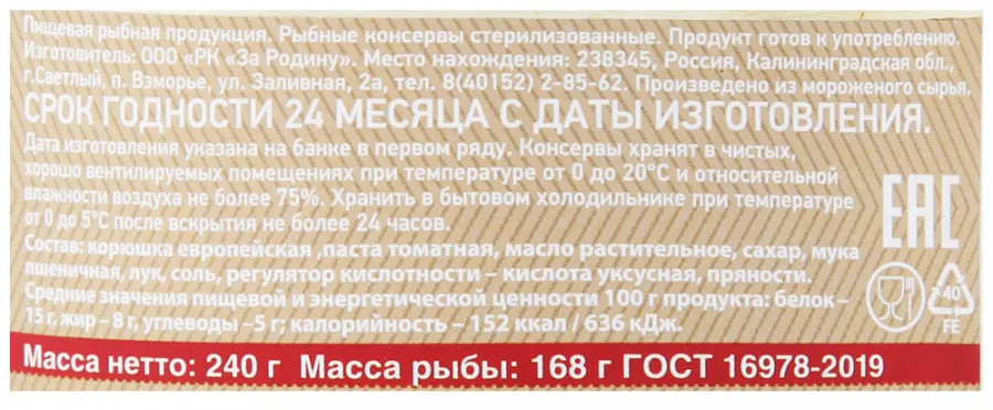 За Родину Снеток обжаренный в томатном соусеВ данный момент этот товар отсутствует в продаже. Возможно, у нас найдется аналогичный или похожий товар здесь. Корюшка отличается сбалансированным составом, благоприятным для организма соотношением кальций — фосфор, высокой концентрацией ненасыщенных жирных кислот, в частности: Омега-3, Омега-6. Продукт изготовлен с сохранением свойств свежей рыбы собственного улова по инновационным технологиям и уникальным рецептам. |
