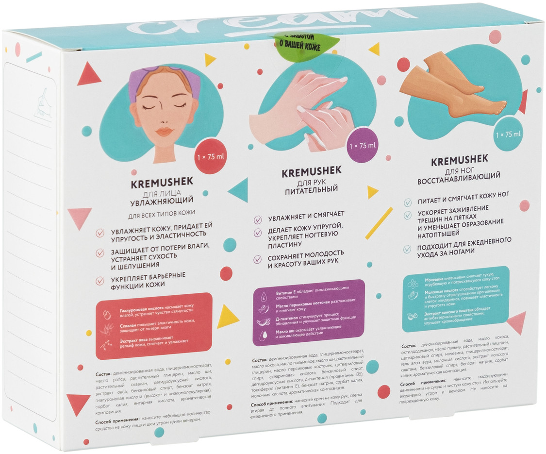 • крем для лица увлажняющий: деионизированная вода, глицерилмоно-стеарат, масло рапса, растительный глицерин, масло ши, растительный сквалан, дегидроуксусная кислота, экстракт овса, бензиловый спирт, бензоат натрия, гиалуроновая кислота (высоко- и низкомолекулярная), сорбат калия, янтарная кислота, ароматическая композиция.