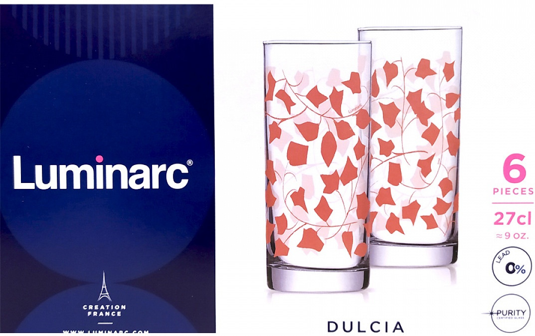 Набор стаканов «Dulcia» от французского производителя Luminarc выполнен из очень гладкого, удароустойчивого, прозрачного стекла, созданного по специальным технологиям плавления.