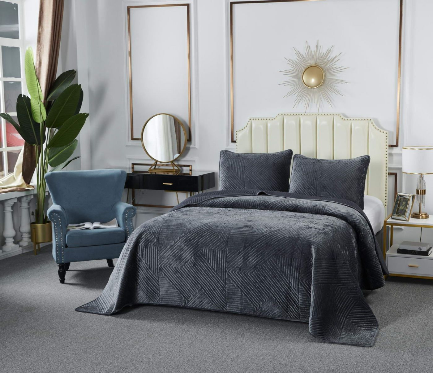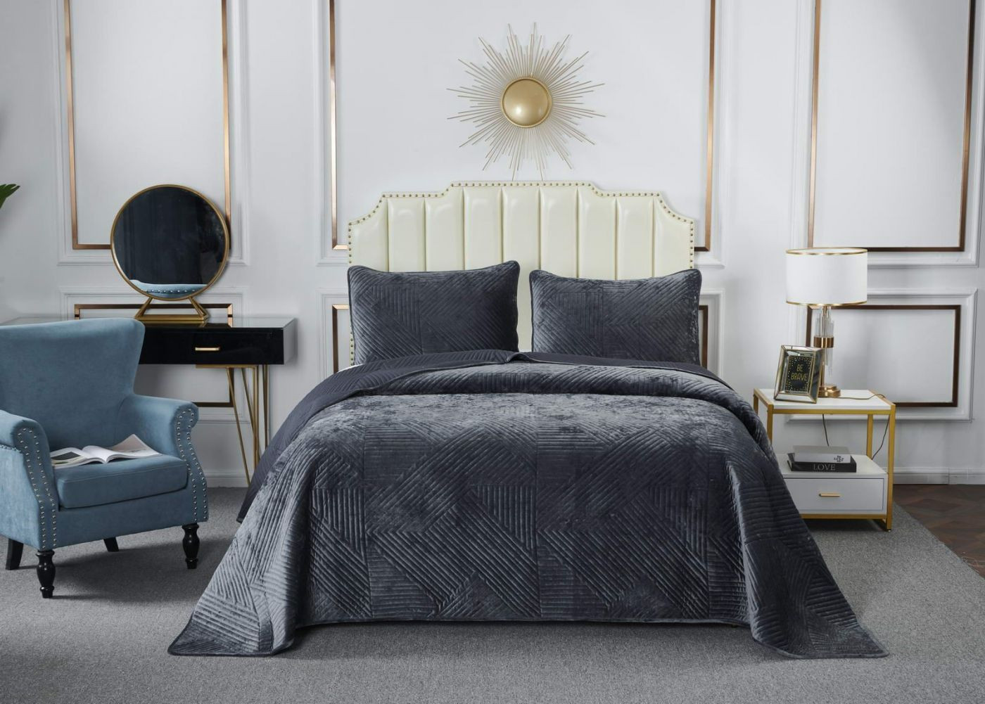 Покрывало Патрисия украшает лаконичный геометрический орнамент. Геометрия всегда была и остаётся актуальной классикой. Конфигурация различных фигур, углов и линий позволяет им органично вписаться в самые разнообразные интерьерные стили.
