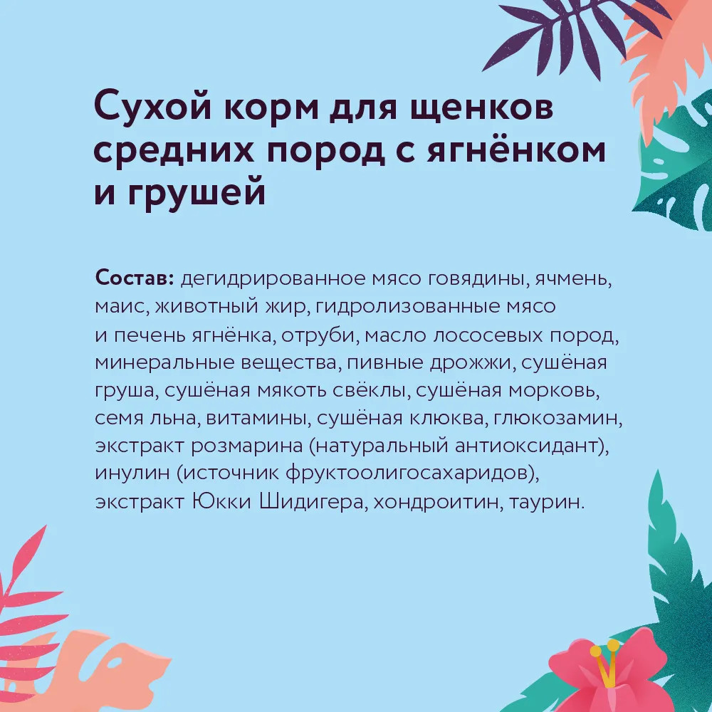 Florida Корм для щенков средних пород с ягненком и грушей
