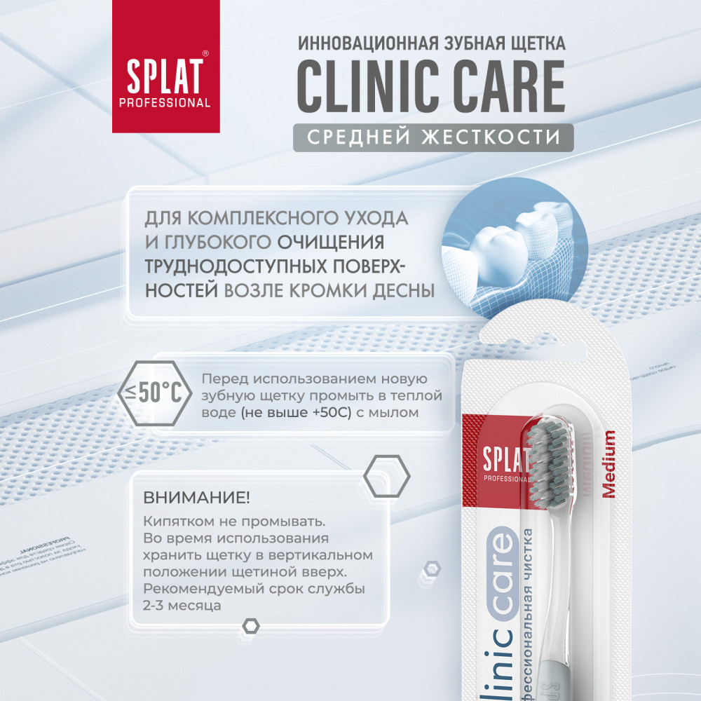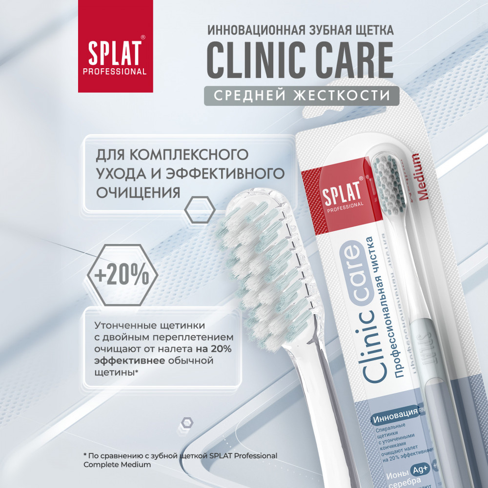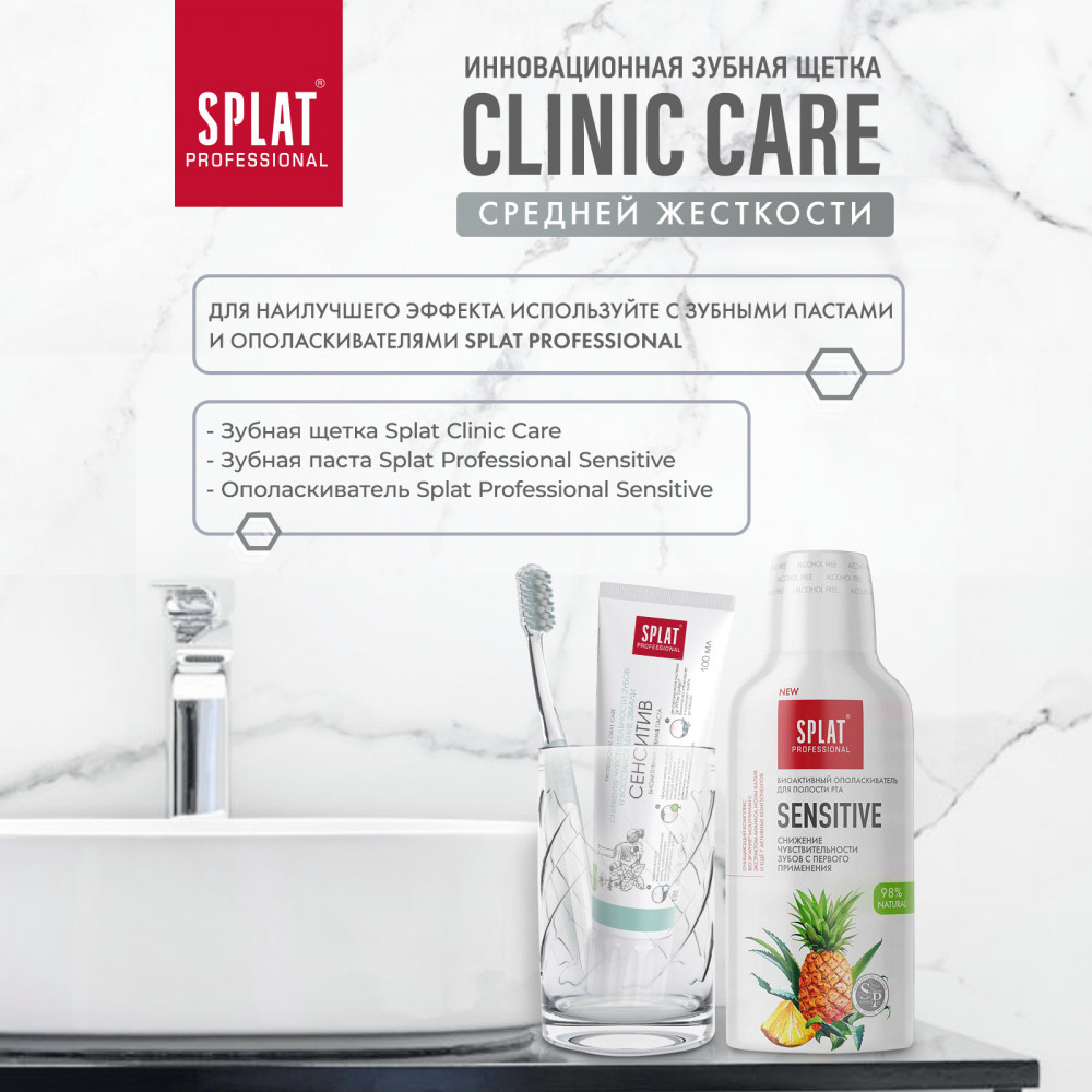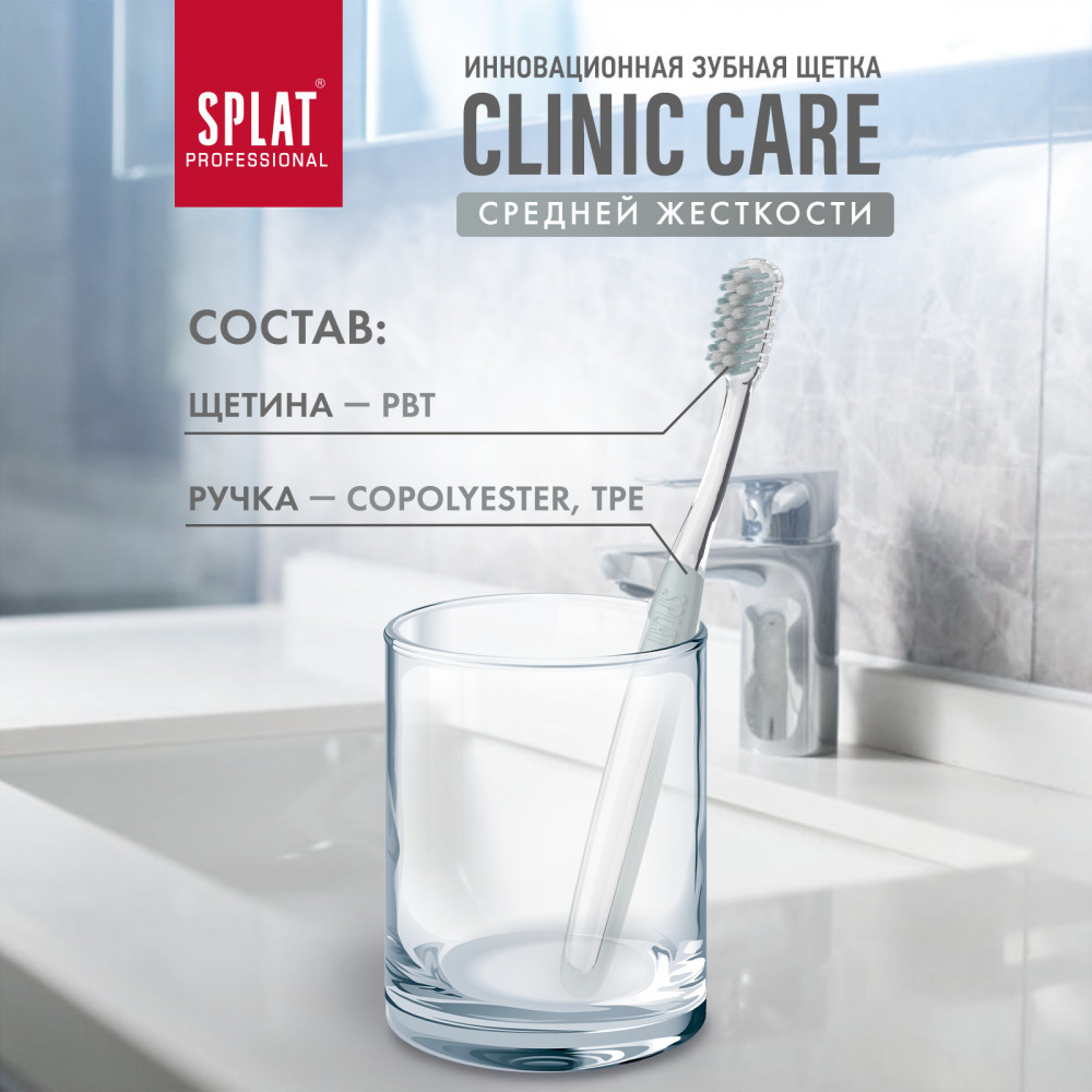 Splat Щетка зубная «Clinic Care»+19 оптимальная жесткость удобная ручка хорошая чистка привлекательный дизайн