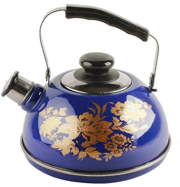 Чайник изготовлен из высококачественного стального проката, что обеспечивает долговечность использования. Внешнее эмалевое покрытие не вступает во взаимодействие с пищевыми продуктами. Такое покрытие защищает сталь от коррозии, придает посуде гладкую стекловидную поверхность и надежно защищает от кислот и щелочей. Чайник оснащен фиксированной ручкой из пластика и крышкой, которая плотно прилегает к краю. Носик чайника оснащен съемным свистком, звуковой сигнал которого подскажет, когда закипит вода.