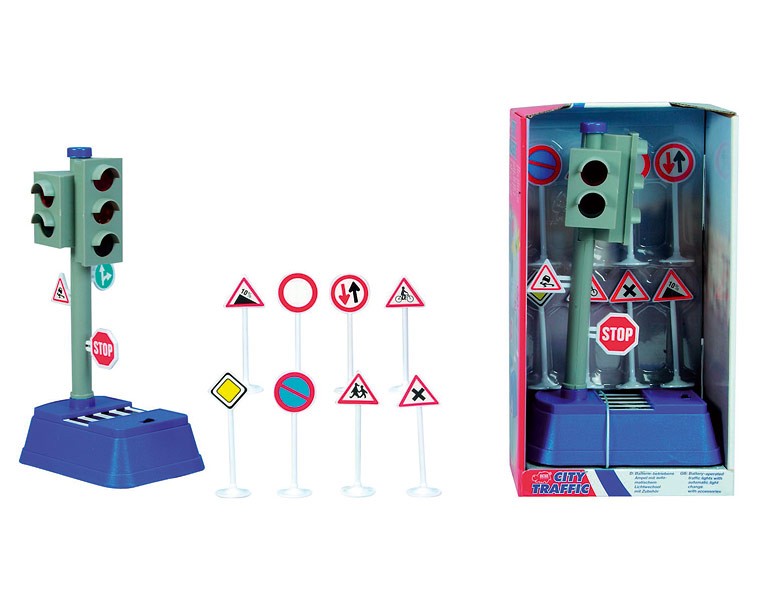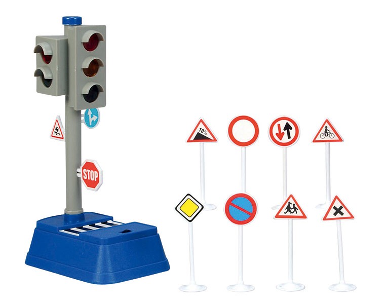 Dickie Светофор + знаки дорожного движения "City Traffic"В данный момент этот товар отсутствует в продаже. Возможно, у нас найдется аналогичный или похожий товар здесь. Игровой набор "Дорожные знаки" включает в себя светофор и восемь дорожных знаков. Светофор автоматически меняет цвета. Вам останется только правильно разместить все элементы на своей игровой дороге и можно начинать игру. Теперь в вашем игрушечном городе никогда не будет аварий. |
