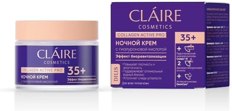 Claire Cosmetics Крем ночной 35+ «Collagen Active Pro»+98 эффект заметен нет аллергии нет высыпаний повторная покупка советую
