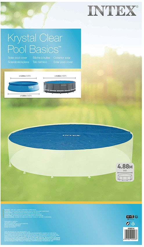 Тент для бассейна INTEX 28014 предохраняет бассейн от попадания в него пыли, грязи, листвы, сохраняет воду чистой. Рекомендуется накрывать бассейн тентом на все время, пока бассейн не используется. Он фиксируется на бассейне специальной веревкой, пропущенной в отверстия по краю тента. Также имеется сливные отверстия для предотвращения скопления воды и излишней нагрузки на каркас бассейна. Тент предназначен для надувных бассейнов Intex easy set и каркасных бассейнов диаметром 4.8 м.