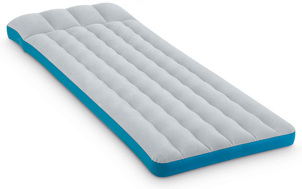 Надувной матрас изготовлен из прочного водонепроницаемого винила, сверху покрыт флокированным слоем, напоминающим велюр, который не позволяет постельному белью соскальзывать. Классический надувной матрас с продольными перегородками зарекомендовал себя как надежная и недорогая модель.