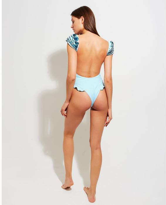 Мне подошел(ношу 44-46 размер) так как на озоне про такой же нашла отзывы что маломерка.На рост 179см нормально 50 размер(маломерит на примерно 2 размера). Ткань плотная, цвет соответствует, как на фото с карточки товара. Можно сделать на спине завязки или фиксацию(черный думаю пойдет так как строчка черная) чтобы было удобно плавать. Без фиксации тоже держится
