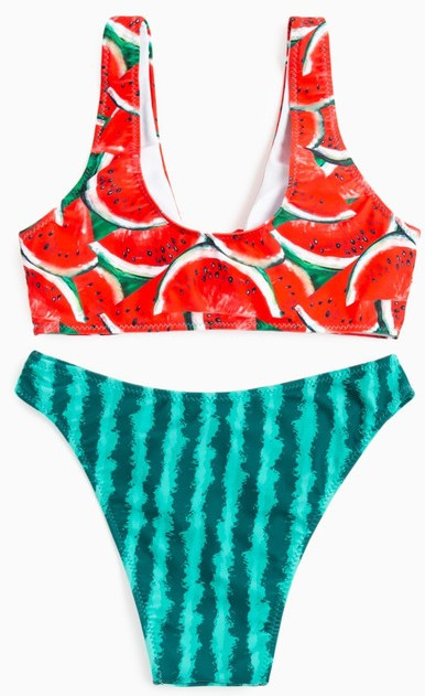 Очень удобный, яркий купальник с весёлым арбузным принтом. Прямо настроение поднимает. Я очень довольна!