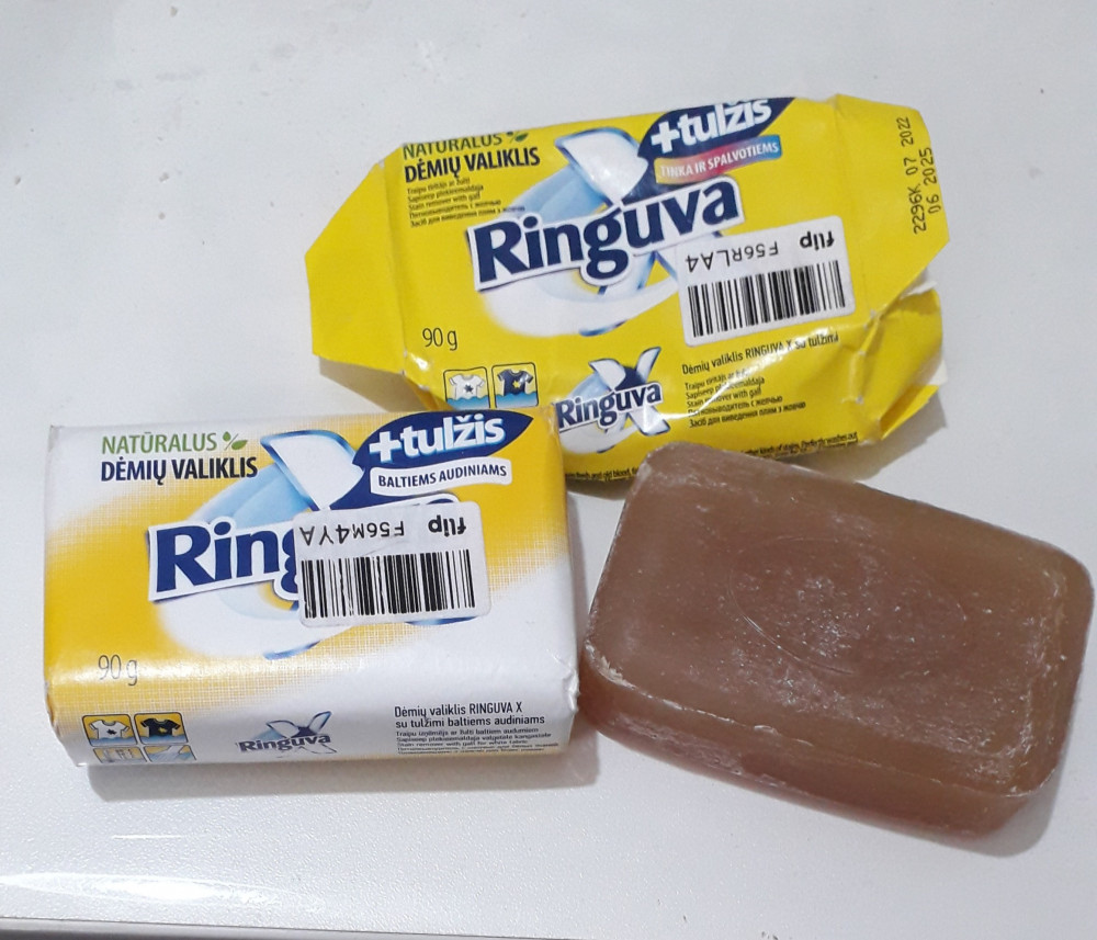 Ringuva X Пятновыводитель с желчьюВ данный момент этот товар отсутствует в продаже. Возможно, у нас найдется аналогичный или похожий товар здесь. Мыло для выведения пятен «Ringuva» с желчью производится из натурального сырья. Удаляет свежие и застарелые пятна крови, жира, ягод, фруктов, кофе, чая, чернил и т.д. Устраняет неприятные запахи. Идеально подходит для отстирывания манжет рубашек и воротников, носков, детской одежды и пр. Быстро биологически разлагается. Не наносит вреда качеству и цвету ткани, подходит для разных видов ткани. Эффективно стирает даже в холодной воде. |