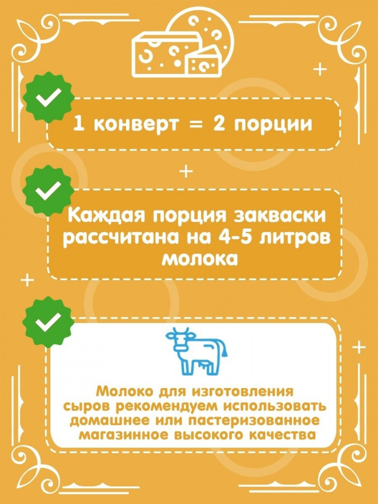 Отличная закваска! С 4,5 литров молока,получилось 0,35 грамм вкусного твердого сыра! Жаль,что ее нет в наличии!