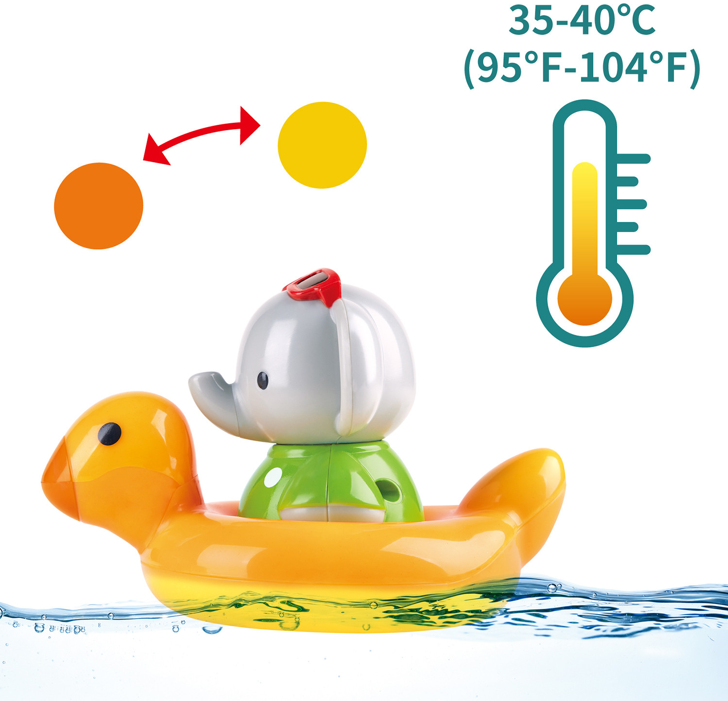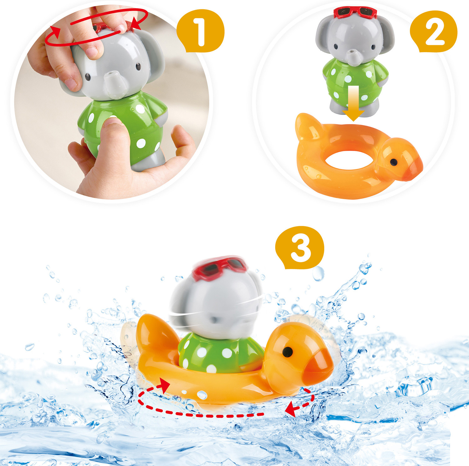 💳 Оплатить за товар можно при получении 🇰🇿 Есть бесплатная доставка по Казахстану от 1 дня 🎁 Копите бонусы с каждой покупки Подружитесь с новым другом во время купания. Этот маленький вращающийся слоненок любит ванну и весело кружится на поверхности воды. У него также есть меняющее цвет утиное кольцо, которое реагирует на теплую воду. Ваш малыш будет удивлен, увидев, как он меняет цвет с оранжевого на желтый в воде с температурой 35 ℃. Вращающаяся игрушка пробуждает интерес детей к обучению и распознаванию цвета, плавучести и причинно-следственной связи, в то время как заводное действие развивает мелкую моторику. |