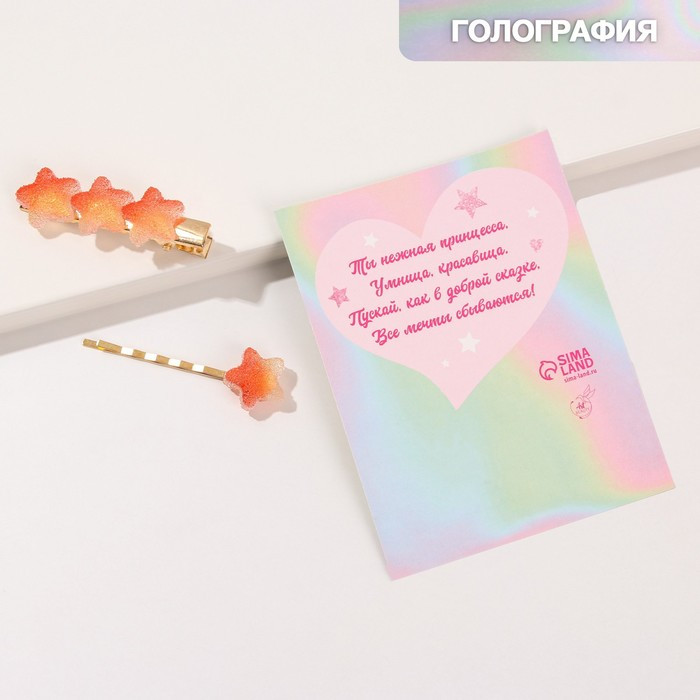 Набор зажимов для волос поможет маленькой моднице создать свой собственный стильный образ и выглядеть безупречно каждый день! Тщательно подобранные аксессуары способствуют формированию чувства вкуса и элегантности, с ними девочка научится заботиться о своём внешнем виде с самого детства.