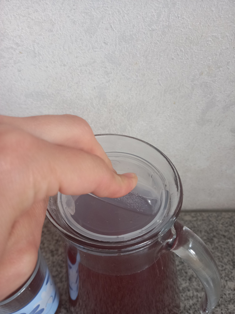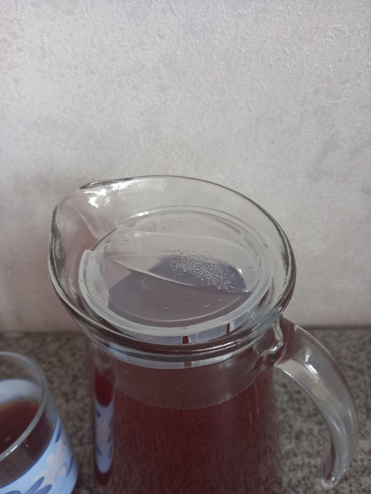 Удивительно удобный кувшинчик! Крышечка маленькая, сидит плотно. При использовании ничего не проливается, не капает. Ручка удобная в захвате. Стекло не слишком толстое, но и не хрупкое, надёжное. Сам кувшин не тяжёлый, с ним легко работать.