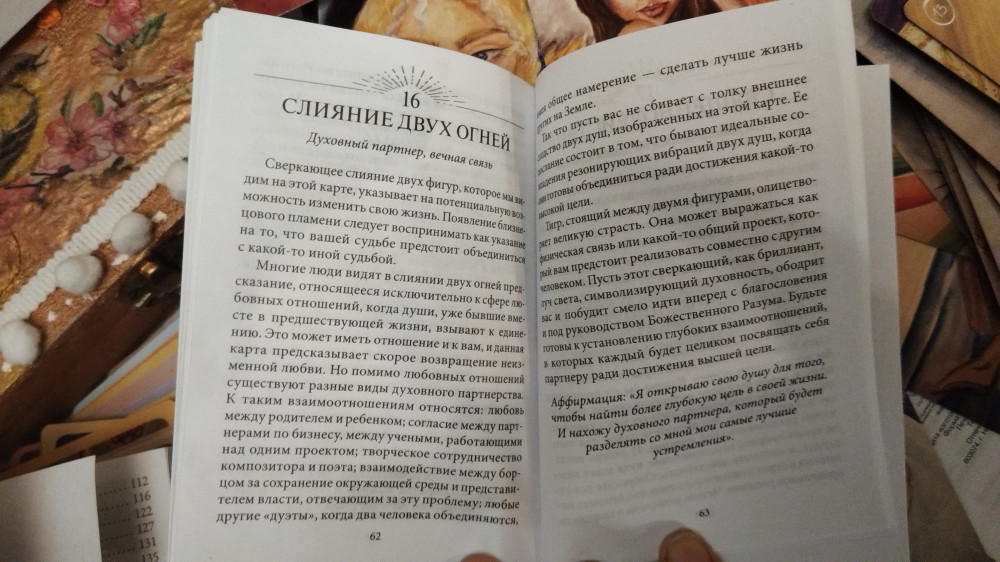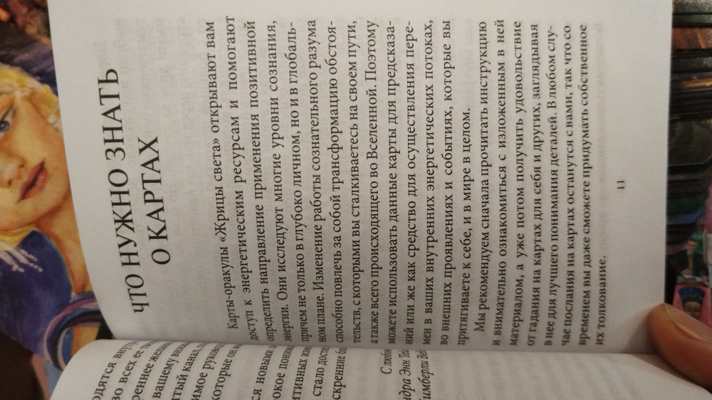 💳 Оплатить за товар можно при получении 🇰🇿 Есть бесплатная доставка по Казахстану от 1 дня 🎁 Копите бонусы с каждой покупки Этот набор из 53 карт является совместной работой двух потрясающих целительниц и духовных наставниц. Сандра Энн Тейлор раскрывает присутствие в нашей жизни универсальной энергии посредством потрясающих изображений живых существ — творений духовного мира, Божественных женских архетипов и таинственных геометрических форм. А известная художница Кимберли Веббер словно переводит Божественную энергию на материальный язык с помощью замысловатых рисунков в стиле «современного магического реализма, который берет свои корни в древнем мире» (как она сама его определяет), используя в своих работах уникальную технику добавления к обычным красителям редких камней-самоцветов, кристаллов и драгоценных металлов. Представленные на картах образы и послания можно применять не только для получения предсказаний, но и в качестве инструмента для изменения своего внутреннего мира и его внешних проявлений в вашей жизни и окружающей реальности. |