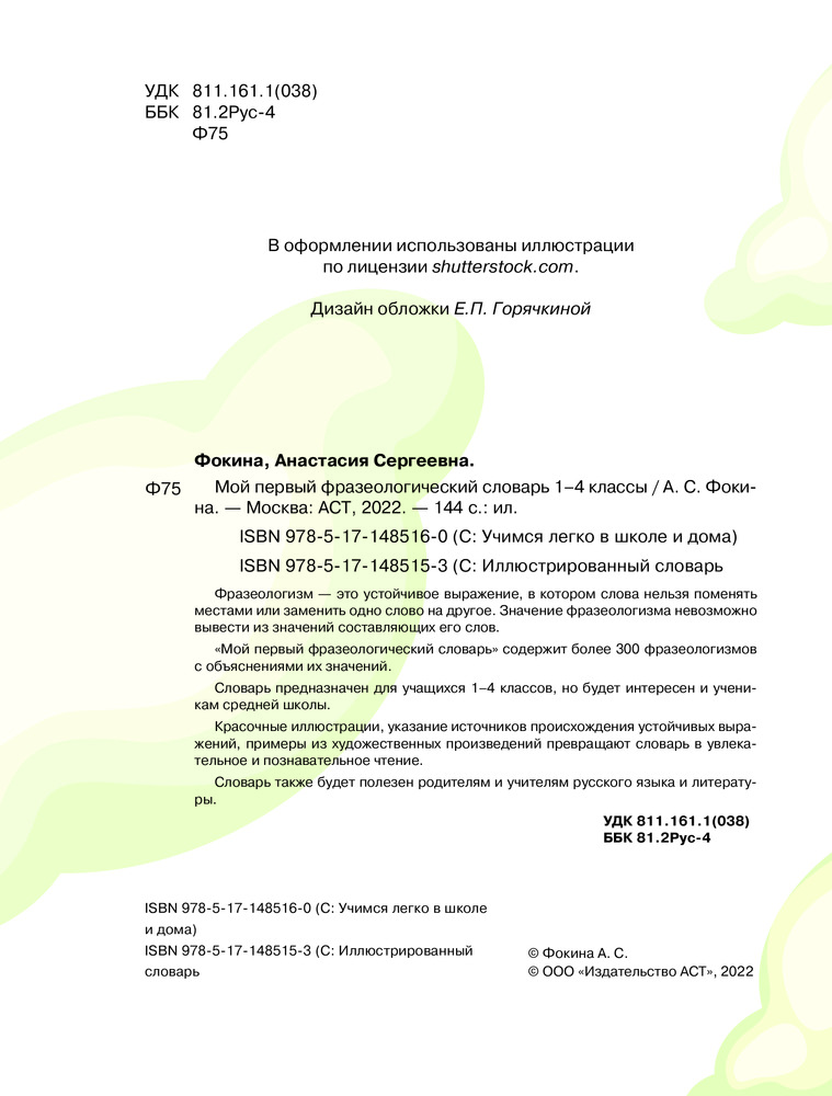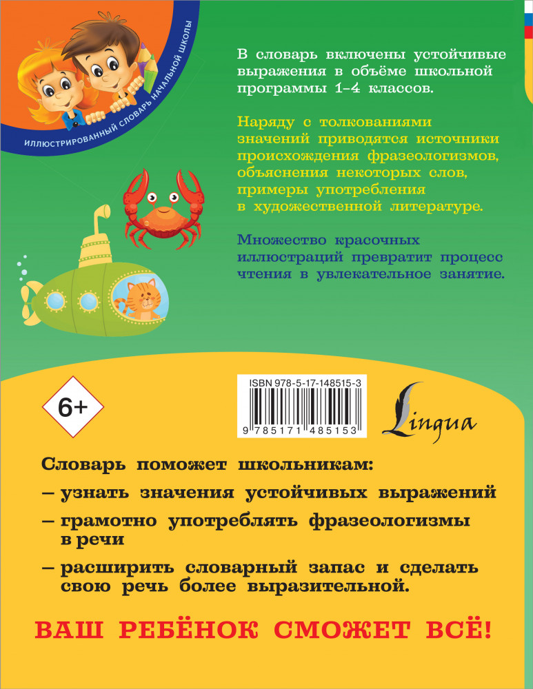 💳 Оплатить за товар можно при получении 🇰🇿 Есть бесплатная доставка по Казахстану 🎁 Копите бонусы с каждой покупки Серия: Иллюстрированный словарь начальной школы Фразеологизм — это устойчивое выражение, в котором слова нельзя поменять местами или заменить одно слово на другое. Значение фразеологизма невозможно вывести из значений составляющих его слов. |