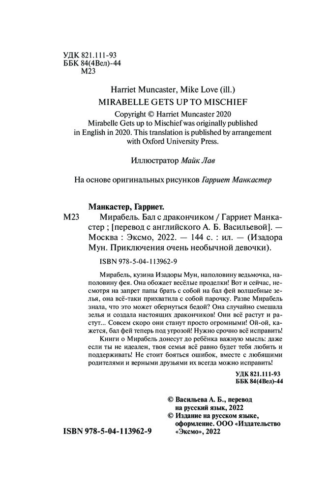 💳 Оплатить за товар можно при получении 🇰🇿 Есть бесплатная доставка по Казахстану 🎁 Копите бонусы с каждой покупки Серия: Детск. Изадора Мун. Приключения очень необычной девочки Мирабель — кузина Изадоры Мун. Наполовину ведьмочка, наполовину фея, Мирабель обожает весёлые шалости! Правда, иногда это приносит ей кучу неприятностей! И всё же Мирабель знает: нужно всегда оставаться собой и быть честной с родными и друзьями. |