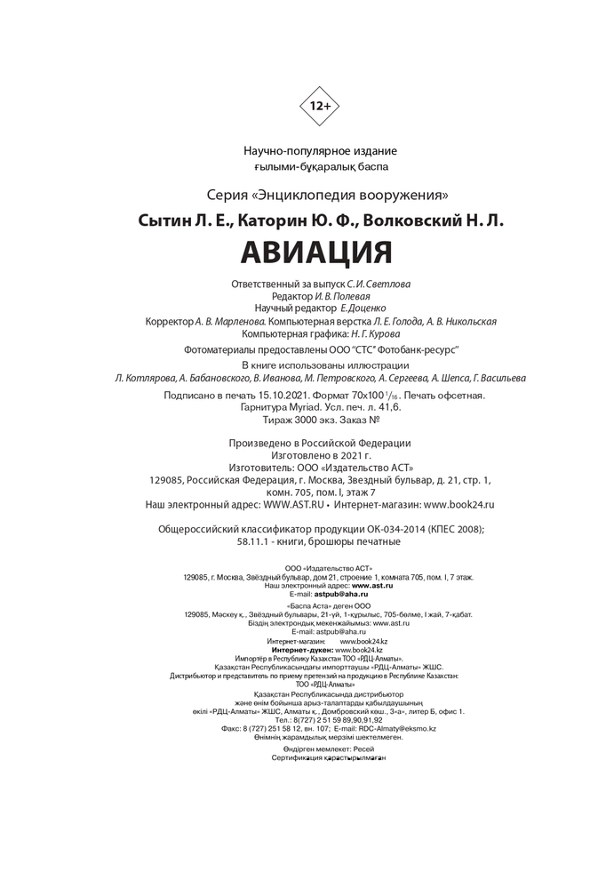 💳 Оплатить за товар можно при получении 🇰🇿 Есть бесплатная доставка по Казахстану 🎁 Копите бонусы с каждой покупки Серия: Энциклопедия вооружения Современная авиация — одна из самых высокотехнологичных отраслей промышленности XXI века. Не так давно крупнейшие державы мира похвастались выпуском истребителей пятого поколения. Американцы гордятся своими F-22 и F-35, но новый российский Т-50 — реальная угроза заокеанским соперникам, удачно сочетающая в себе превосходные летные качества, уникальные средства обнаружения противника и малозаметность. Будущее мировой авиации отдается беспилотным аппаратам — они позволяют выполнять маневры с перегрузкой, превышающей физические возможности человека, а также увеличить продолжительность и дальность полетов. В этой книге собрана информация обо всех основных моделях современных военных самолетов и вертолетов, состоящих на вооружении у армий мира, а также о новейших разработках машин, которые увидят свет лишь в следующих десятилетиях. |