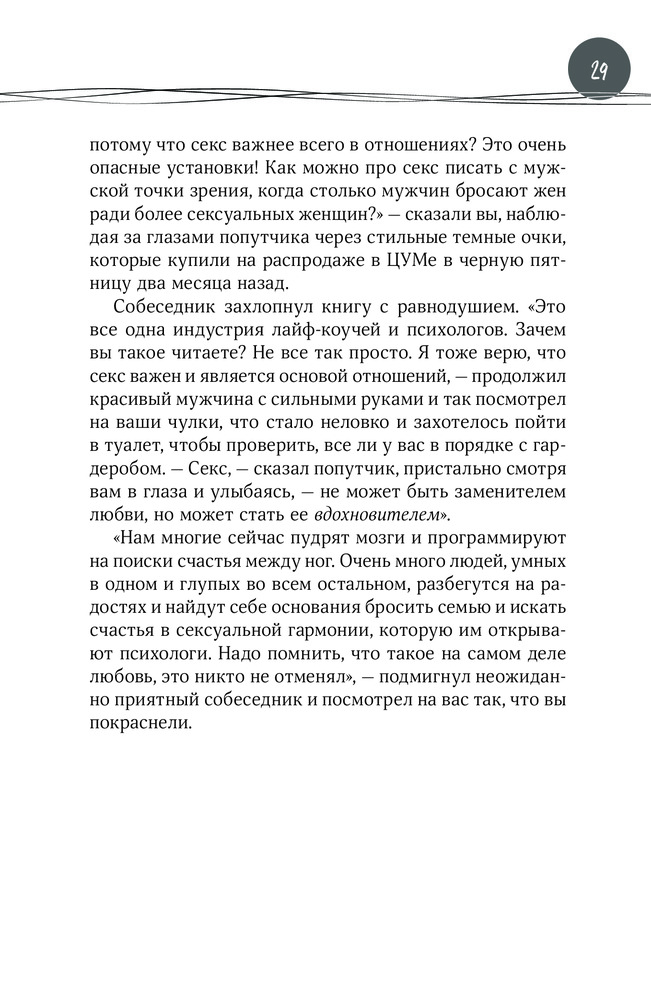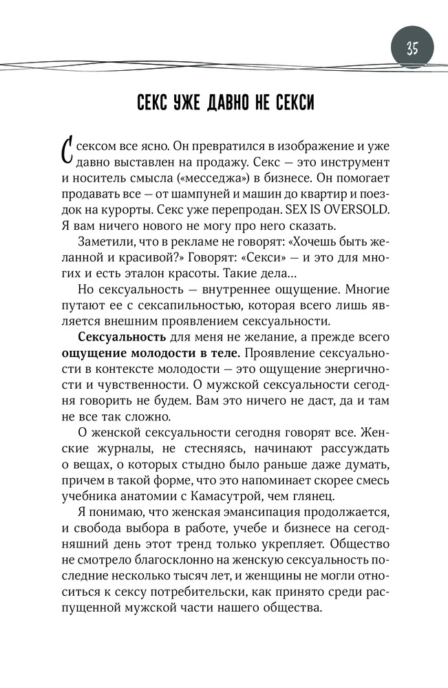 У автора даже нет фамилии, это псевдоним. Живёт в Америке и чем только ни занимался! И театром, и танцами, и маркетингом! Теперь вот решил объяснить нам, дурочкам, что такое сексуальность. Психолог доморощенный. А маркетинг работает, да. Хорошо, хоть природа не так сильно пострадала - напечатано на газетной бумаге. Отнесу на помойку.
