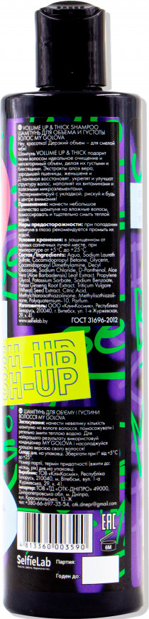 Selfielab Шампунь для объема и густоты волосВ данный момент этот товар отсутствует в продаже. Возможно, у нас найдется аналогичный или похожий товар здесь. Серия: MY GOLOVA Мягкое очищение, объем у корней с эффектом push-up, придание упругости и блеска волосам. |