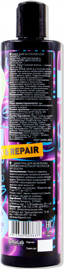Selfielab Шампунь для питания и сохранения цвета волосВ данный момент этот товар отсутствует в продаже. Возможно, у нас найдется аналогичный или похожий товар здесь. Серия: MY GOLOVA Мягкое очищение волос и кожи головы, увлажнение, укрепление и уплотнение волос, сохранение цвета волос и придание им блеска. |